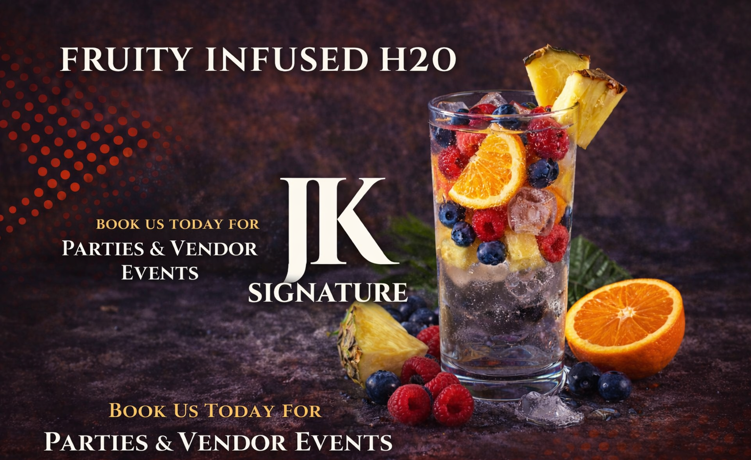 JK Signature specializes in premium, visually stunning beverage experiences designed to elevate any event. We create refreshing, fruit-infused waters using fresh, high-quality ingredients that not only taste amazing but also add a vibrant, elegant touch to your setup.